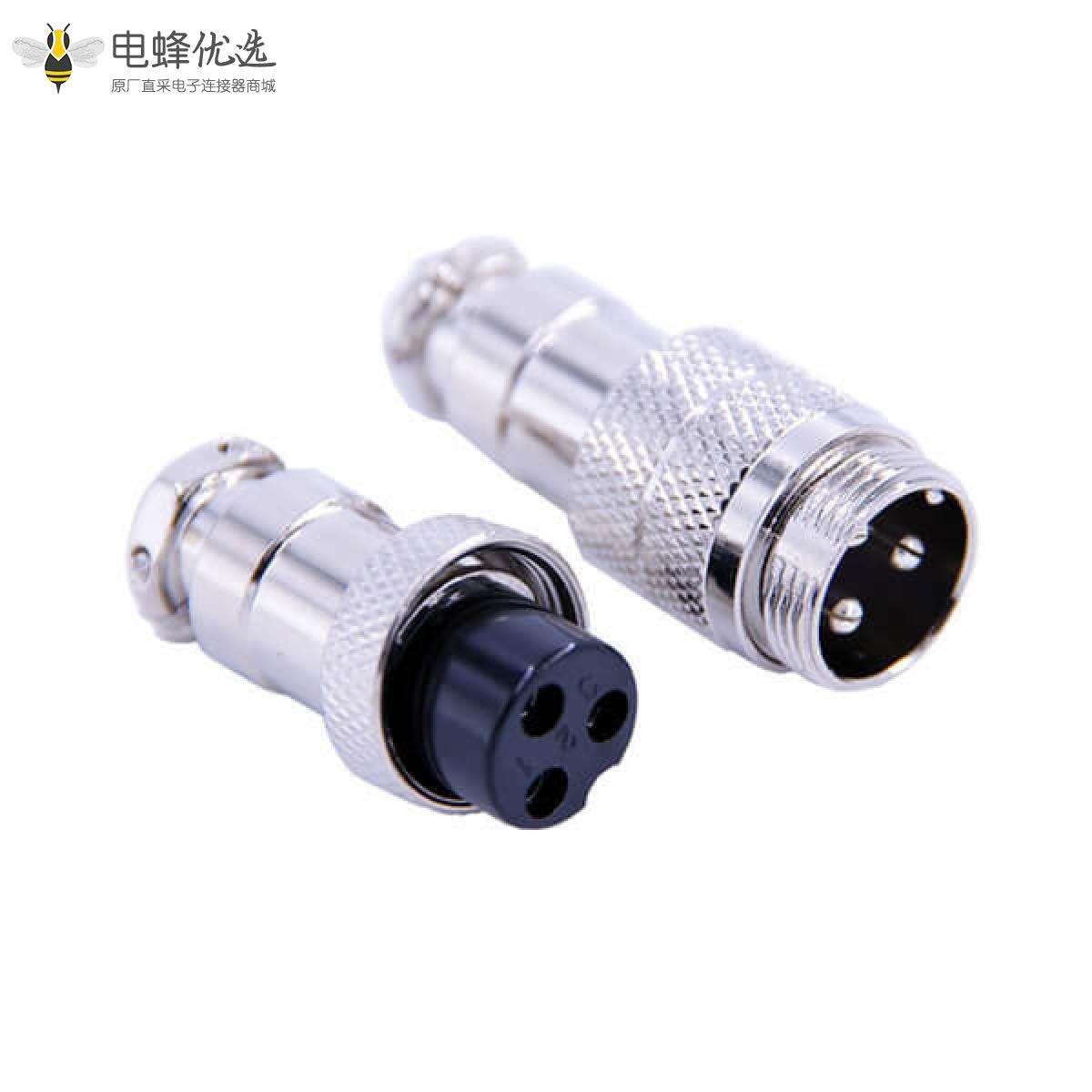 GX16 3芯对接航空插头直式公母头接线