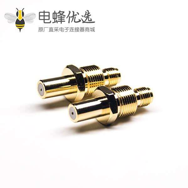 - sma连接器,直式,180度,母头,焊接式,前锁穿墙,接线,镀金,50欧姆
