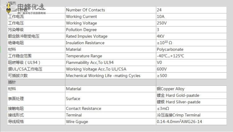 24芯矩形重载连接器冷压接线工业航空插头公母芯厂家直发