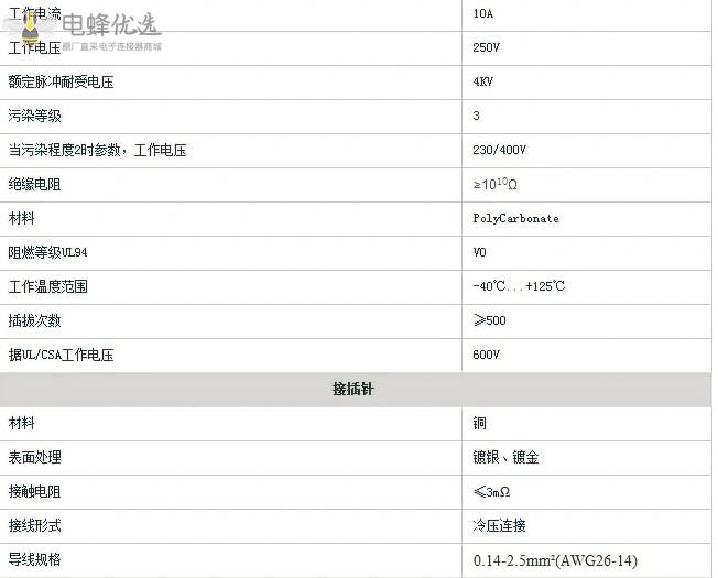 导线规格:0.14-2.5m㎡(AWG26-14)