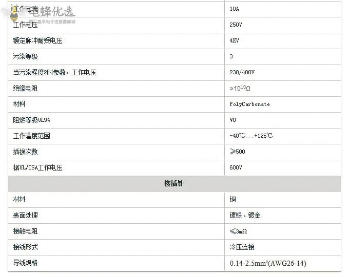 导线规格:0.14-2.5m㎡(AWG26-14)