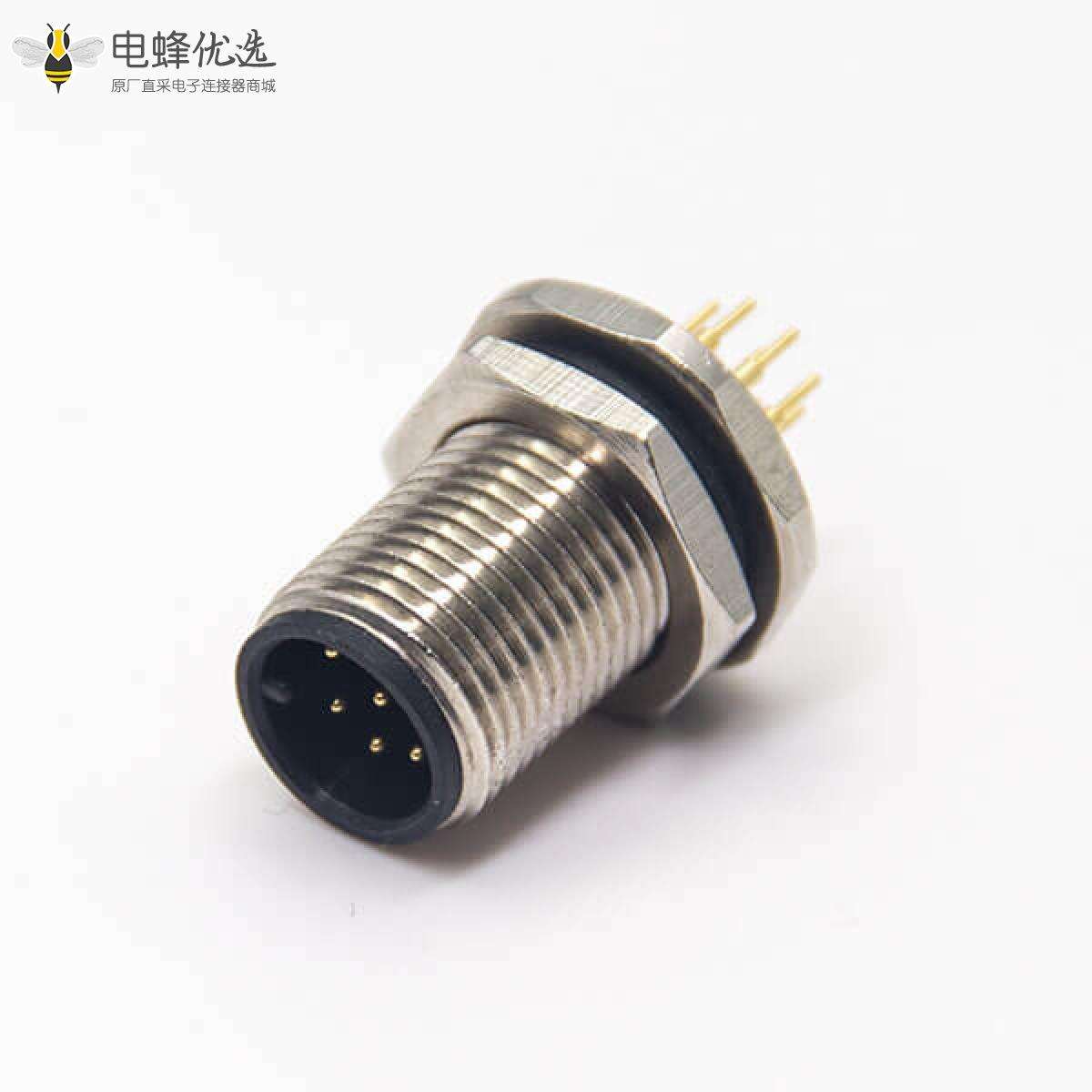 M12,板端插座,A编码,8芯,直式,公头,前锁板,面板安装,插PCB板安装;