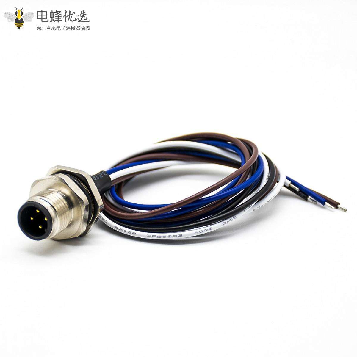 M12,板端插座,A扣,4芯,直式,公头板端,焊线,后锁板,防水,带屏蔽,0.2M;