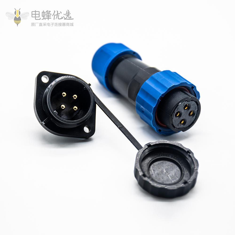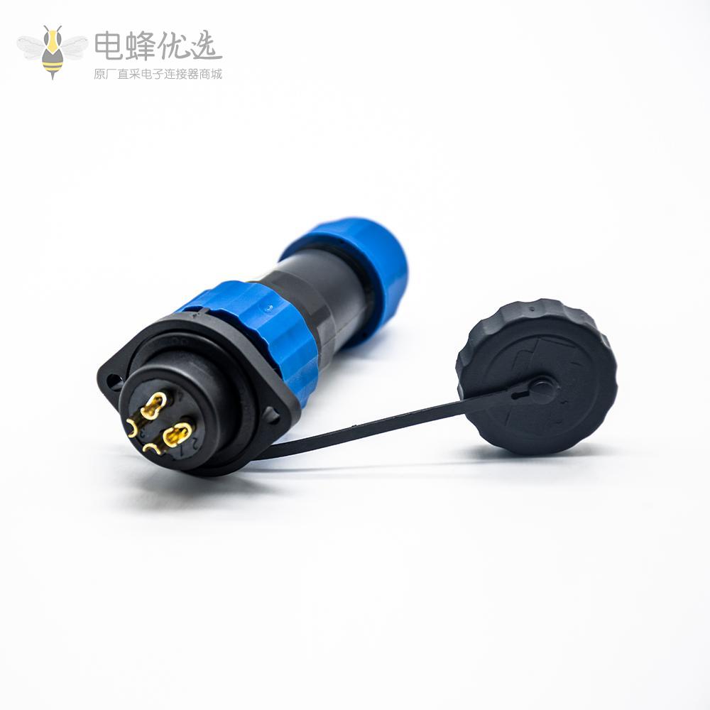 SP21系列,直式,2孔法兰,公菱形插座,母插头,面板安装,焊接中心针,4芯;