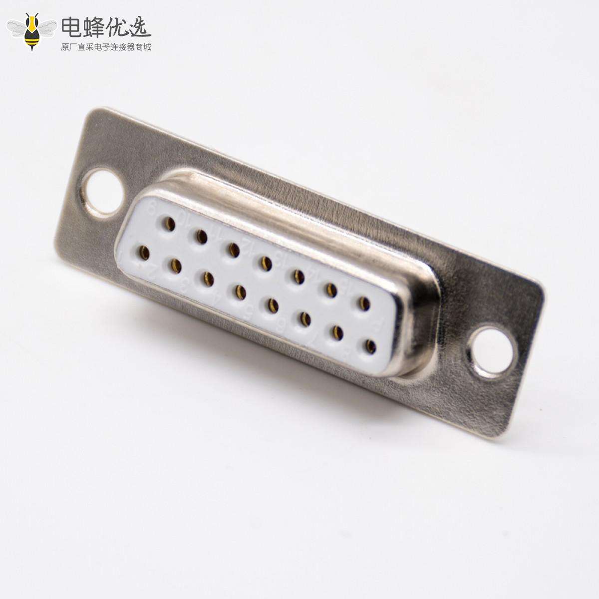 - D-sub连接器,车针型,母头,15芯,2排,镀镍,直式,焊杯,白色胶芯;